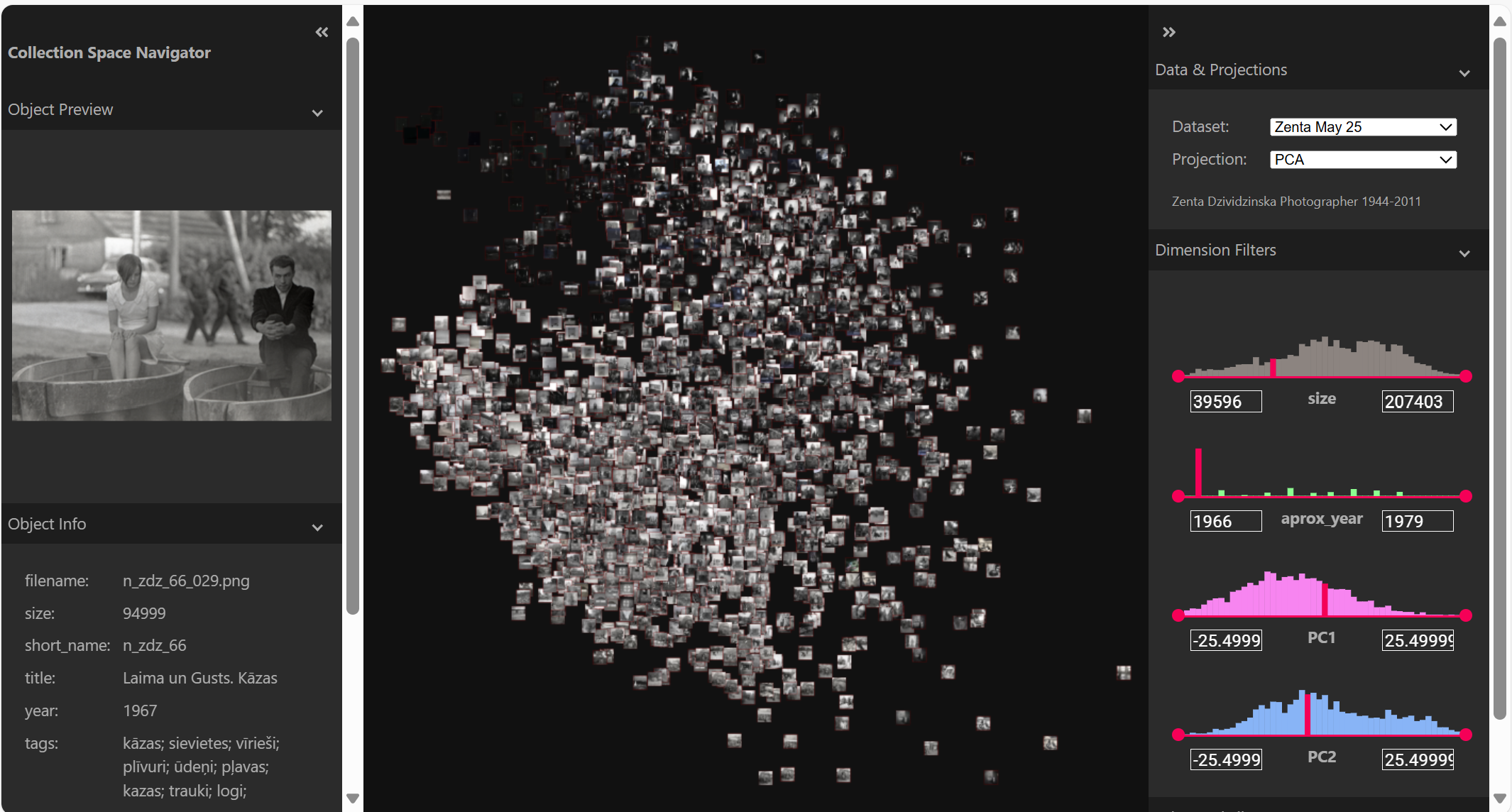 We investigated the usefulness of object recognition techniques, explored the potential of mapping the artist’s signature style based on an inquiry into the photo-technical parameters of the negatives, and experimented with automated classification and grouping of individual frames based on freeform natural language descriptions.